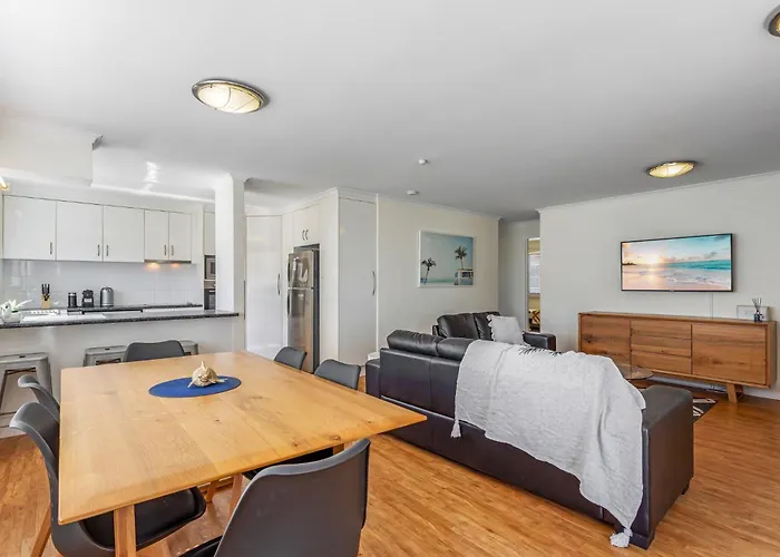 The beachfront 1-bedroom Cosy 2-Bedroom Seaside Unit Steps From Beach Maroochydore apartment offers easy entry to such city sights as Pincushion Island, situated merely a 5-minute walk away. Wi-Fi is provided for both business and leisure activities.